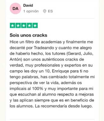 Y muchísimos alumnos, como has visto más arriba, han obtenido resultados aplicando lo que enseña en Tradeando.